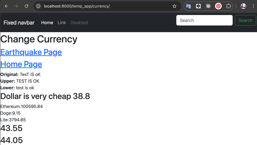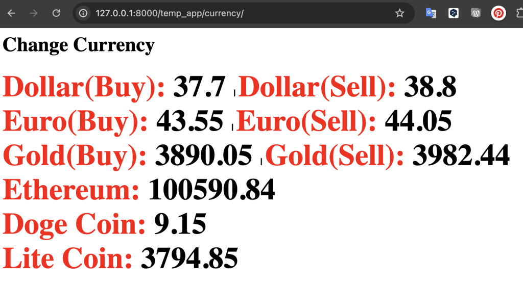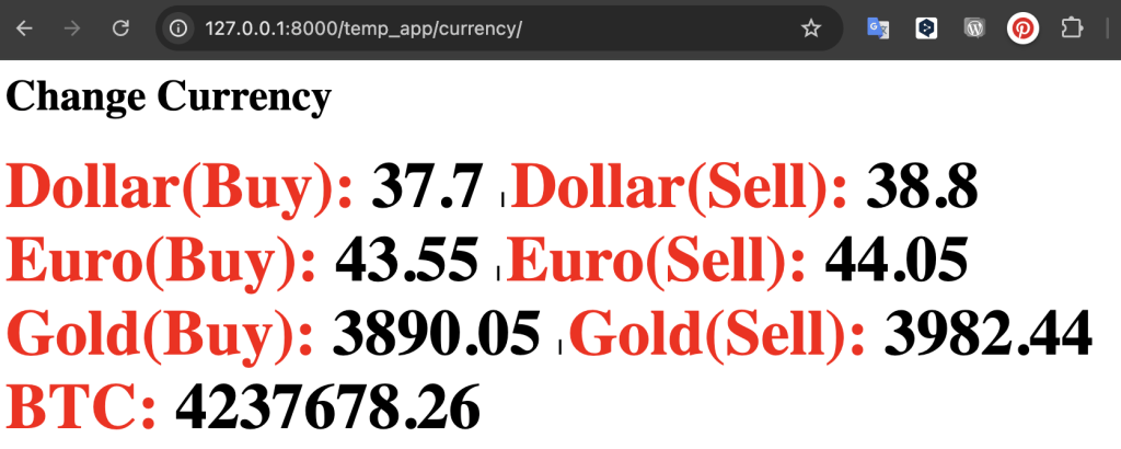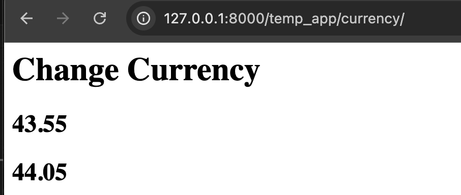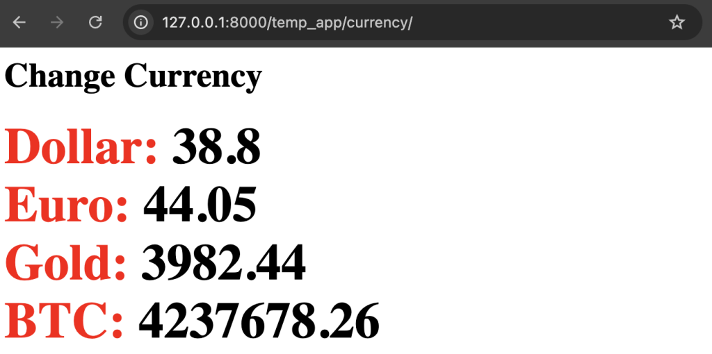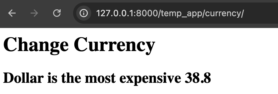 While defining with the render method in the function, we will send the currency data we define to the Html page with the “context=” parameter. Let’s make changes in temp_app/views.py file as follows.