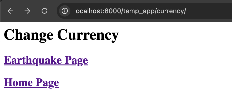 temp_app/currency.htmlJinja Syntax will not work outside Django. There is no such typing method on standard web servers. It only works on the Django server. It will look like this on the screen: